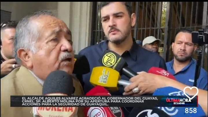 Guayaquil.- El alcalde del Guayaquil, Aquiles Alvarez, se reunió esta mañana con el Gobernador del Guayas, Capitán Alberto Molina para coordinar varios temas, entre ellos el seguridad. «Estoy feliz por la actitud de puertas abiertas del señor Alcalde, tenemos que sumar, la unidad es importantísima, tenemos el enemigo al interior. Este es un combate y estamos todos en el mismo buque si no hacemos el esfuerzo juntos el buque se hunde, por eso todos tenemos que hacer el esfuerzo para que Guayaquil sea lo que fue siempre, dijo la autoridad provincial al salir de la reunión.